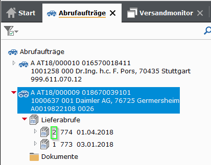 - die beiden ersten „Positionen" gegenüber dem ersten Lieferabruf nicht mehr vorhanden